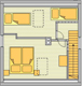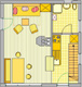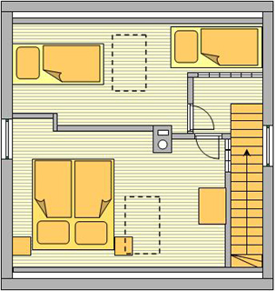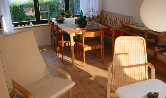 Das Ferienhaus bietet in zwei getrenneten Schlafräumen und einem gemeinsamen Wohn- / Essraum großzügig Platz für 4 Personen. Die Böden der Wohn- und Schlafräume sind mit Dielen ausgestattet.